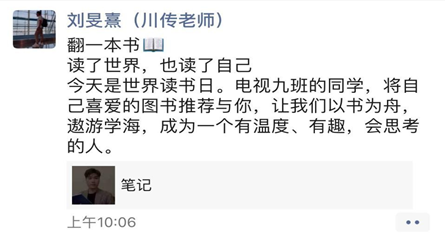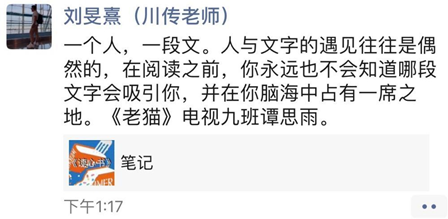 图为有声语言艺术学院刘旻熹老师在学生用心回课后的感悟