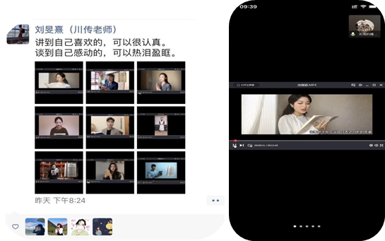 图为刘老师的《播音创作基础 1(内部技巧)》、《电视主播主持 2》教学成果展示