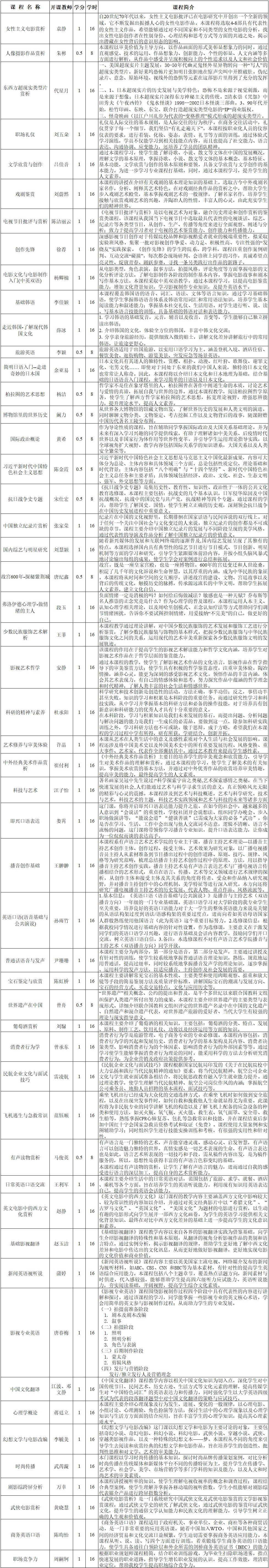 2020-2021学年第二学期面授公共选修课课程简介