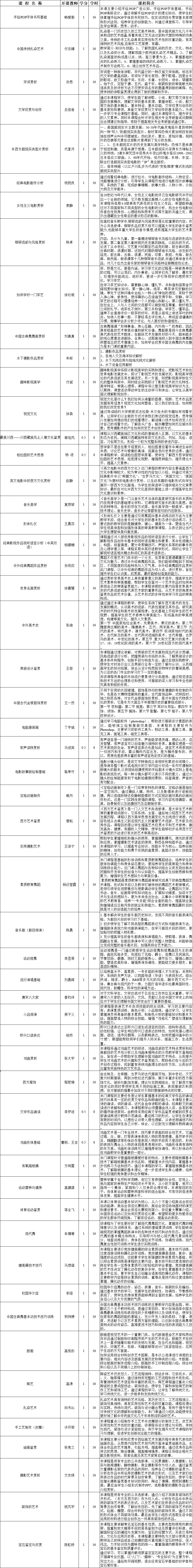 2021-2022学年第一学期面授公共选修课·美育教育类信息公示