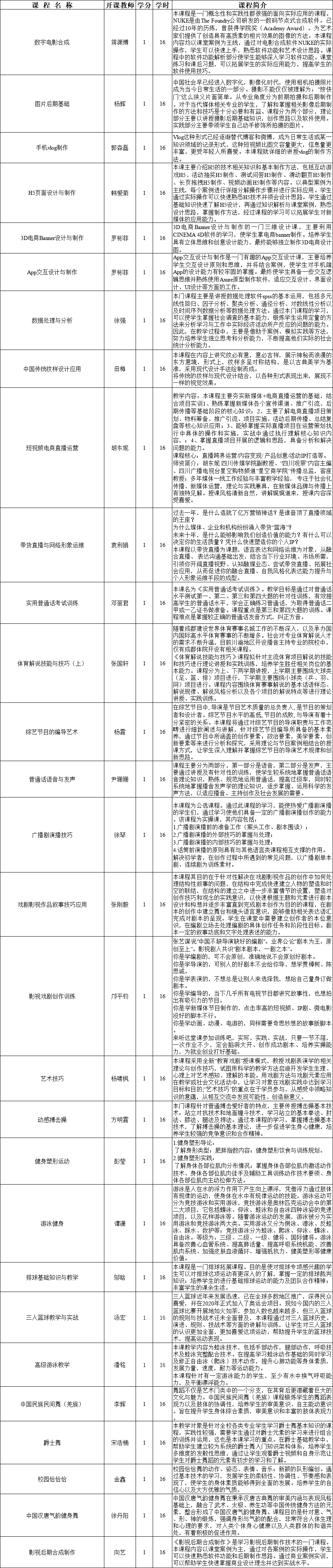 2021-2022学年第一学期面授公共选修课·美育教育类信息公示