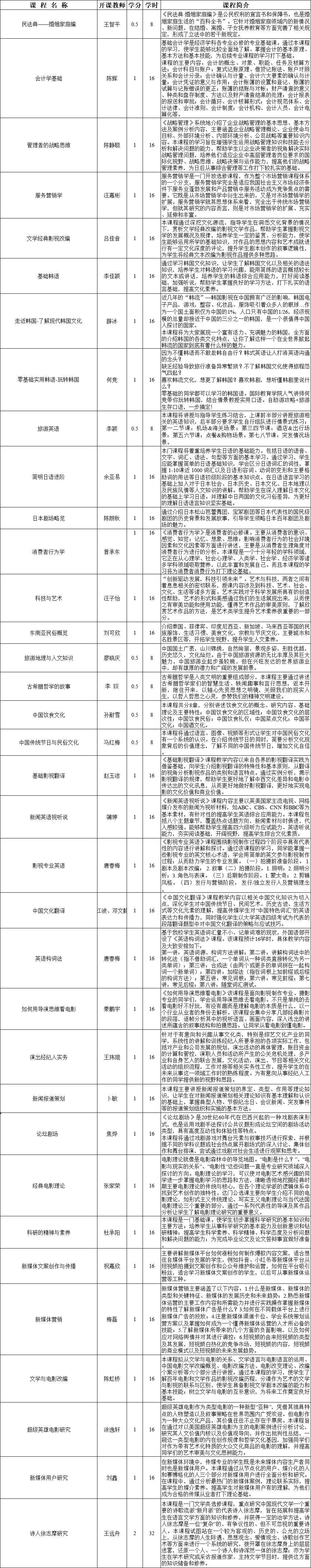 2021-2022学年第一学期面授公共选修课·其他信息公示