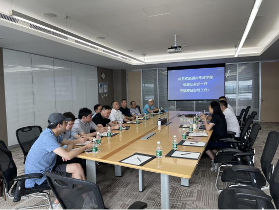 2022年6月22日上午,四川传媒学院校长张颖江、实验室与设备管理处处长杨高山、教务处副处长龚强、数字媒体与创意设计学院院长马建明、副院长向东及数字媒体与创意设计学院相关专业主任一行到腾讯成都大厦,围绕“产教融合、协同育人”方面进行交流、座谈。