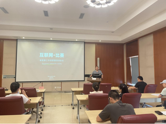 合作教育科科长龙继祥汇报了目前全省和我校“互联网+”大赛各赛道报名情况和“互联网+省级复赛”的时间安排,强调了资料上传时应注意的事项。随后,教务处副处长龚强详细介绍了“互联网+省级复赛”文件要求及注意事项,并针对省级复赛团队的指导教师做了关于比赛的专项培训。
