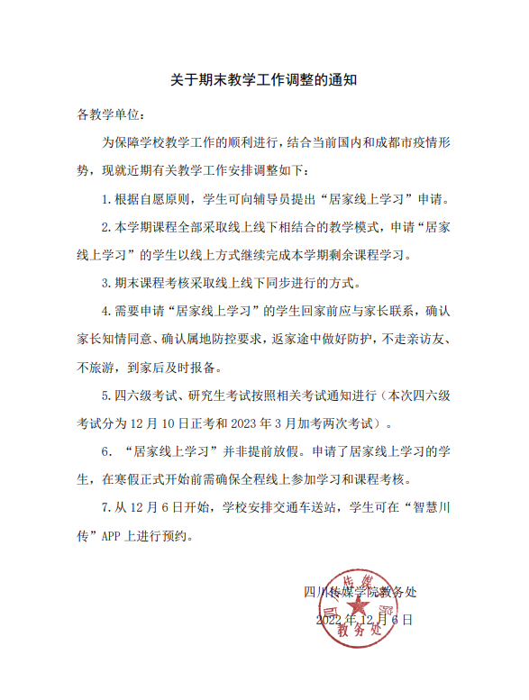 四川传媒学院关于2022年下半年全国大学英语四、六级考试因疫情不能返校参考退费的通知