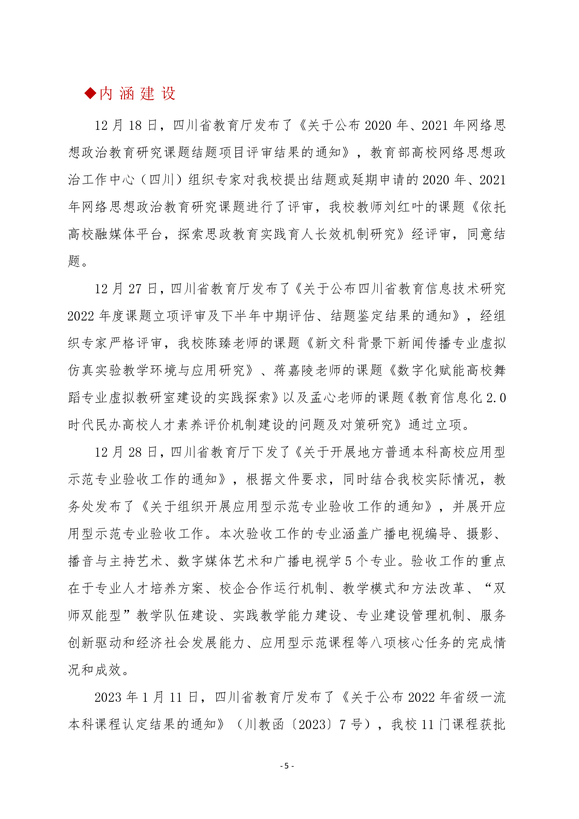 四川传媒学院教学工作简报 第五期