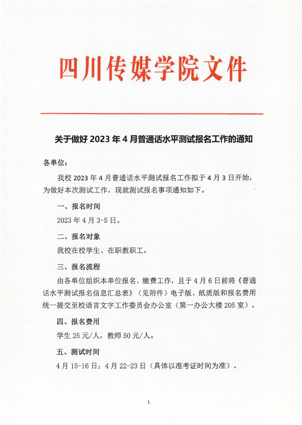 关于做好2023年4月普通话水平测试报名工作的通知