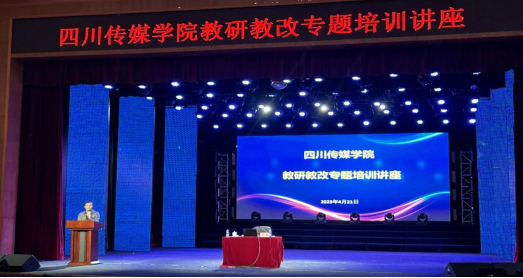 为进一步深化教育教学改革与研究,切实提高教师教学研究水平,4月21日下午14:30,我校在大型演播厅组织开展首场教研教改系列专题讲座。学校特邀西南交通大学外国语学院院长助理兼商务英语系主任贾蕃副教授为专题讲座主讲人。本次讲座由教务处副处长万崇伟主持,学校各单位500余名教师参加了培训讲座。