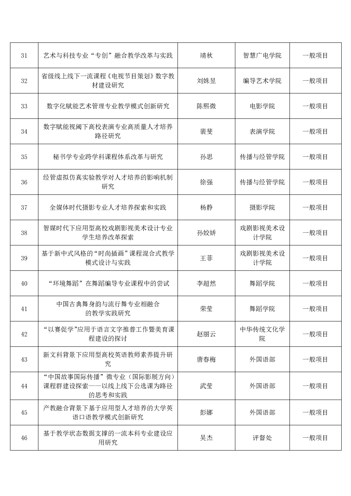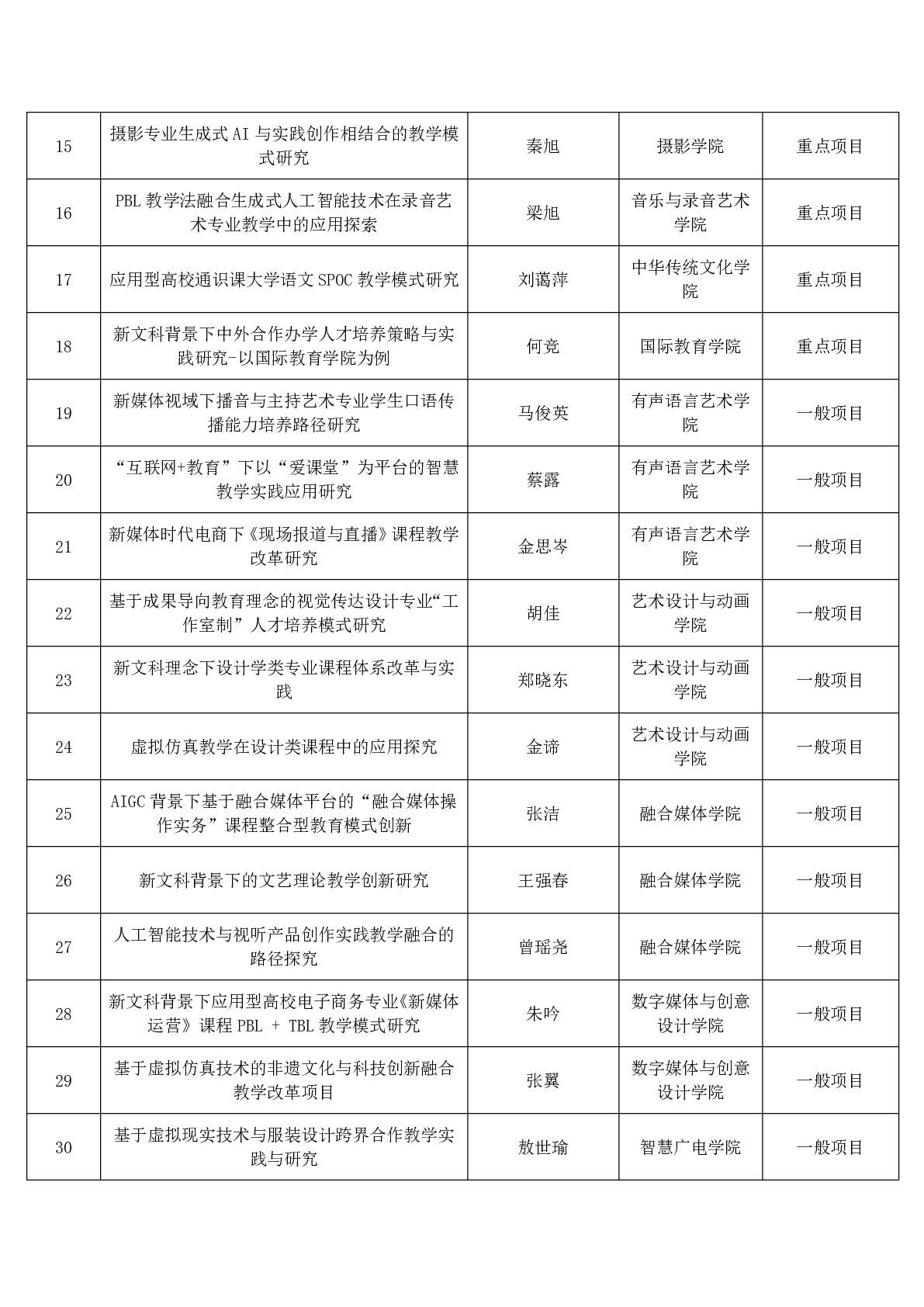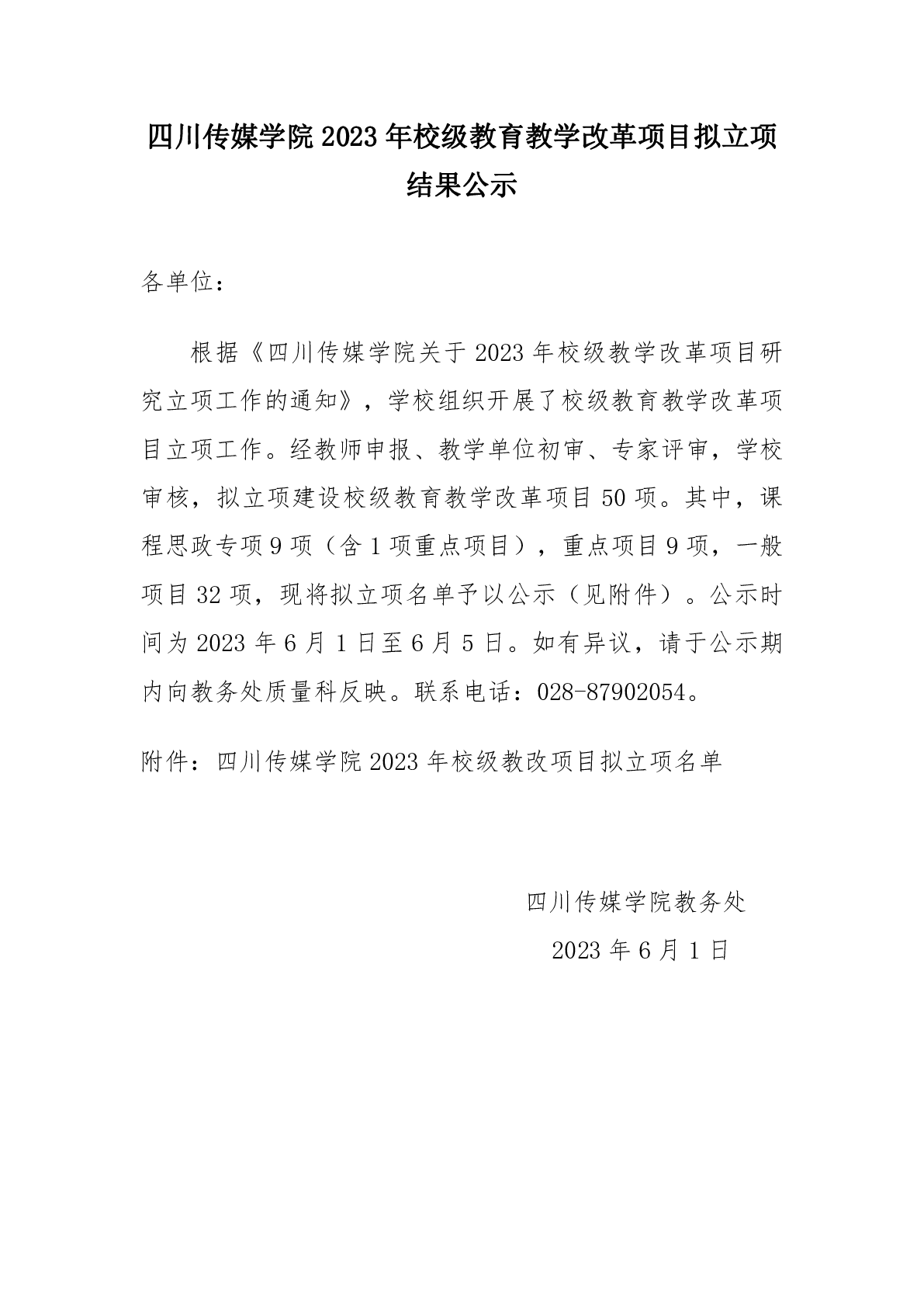 四川传媒学院2023年校级教育教学改革项目拟立项结果公示