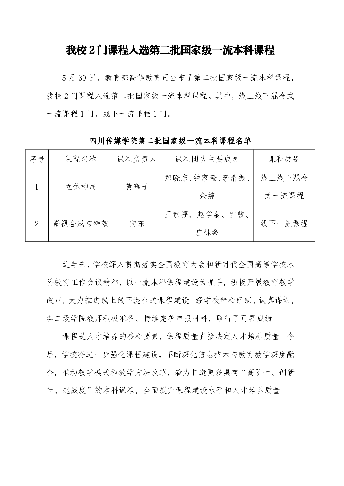 我校2门课程入选第二批国家级一流本科课程