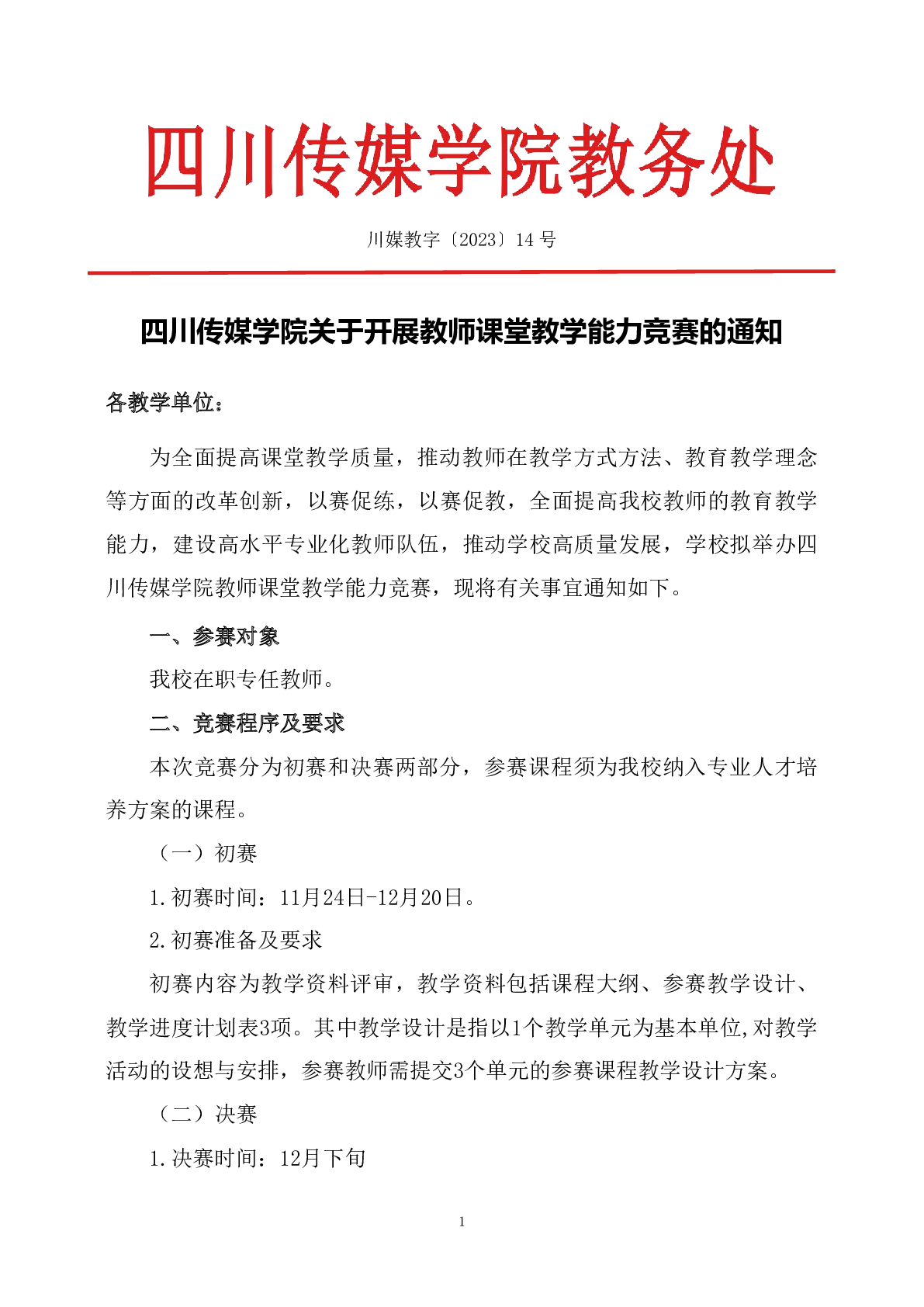四川传媒学院关于开展教师课堂教学能力竞赛的通知