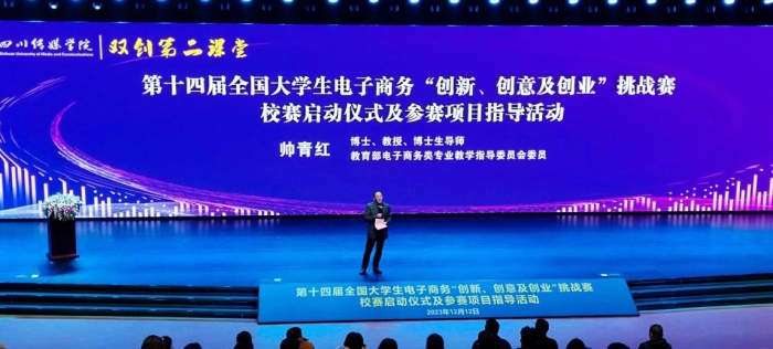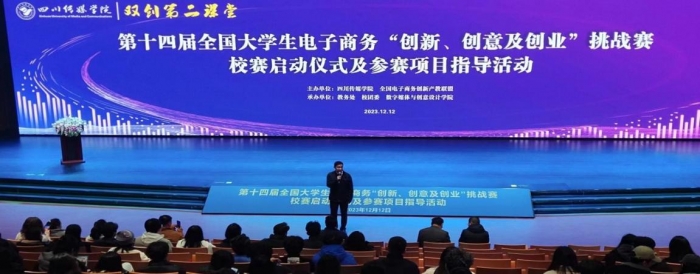 12月12日,在四川传媒学院西区2A10-118(学术报告厅)隆重举行了由四川传媒学院、全国电子商务创新产业联盟主办,学校教务处、团委、数字媒体与创意产业学院承办的四川传媒学院“创新创业第二课堂”活动暨第十四届全国大学生电子商务“创新、创意及创业”挑战赛(以下简称“三创赛”)的校赛启动仪式及参赛项目指导。活动邀请了教育部电子商务类专业教学指导委员会委员、“三创赛”四川赛区竞组委主任、四川电商教指委副主任帅青红教授,“三创赛”四川竞组委副秘书长、成都市电子商务协会副秘书长陈梓宇为四川传媒学院同学做参赛、备赛指导。另外,学校各二级学院创新创业负责人和师生代表有近400人参加此次活动。活动旨在推动大学生积极参与创新创业实践,提升创新创业知识和技能。