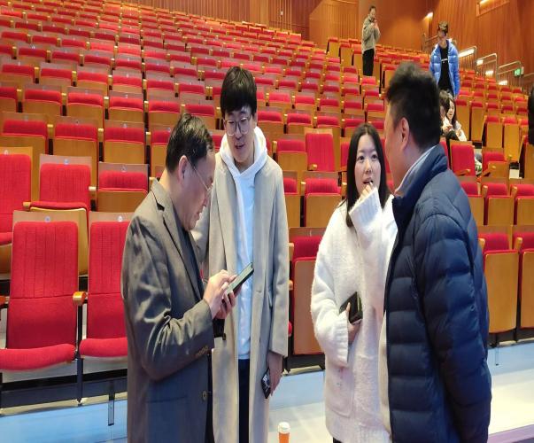 陈梓宇先生分享了“三创赛”的注意事项和典型案例。他提醒同学们在参赛过程中要注意细节,要善于挖掘和发挥自己的优势,同时还要学会从他人的成功案例中汲取经验。活动最后,帅教授和陈秘书长也与个别团队成员进行了深入交流、指导工作,对存在的疑惑进行了耐心细致的指导,并合影留念。