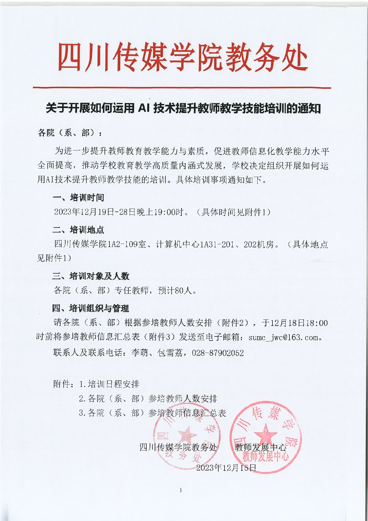 关于开展如何运用 AI 技术提升教师教学技能培训的通知