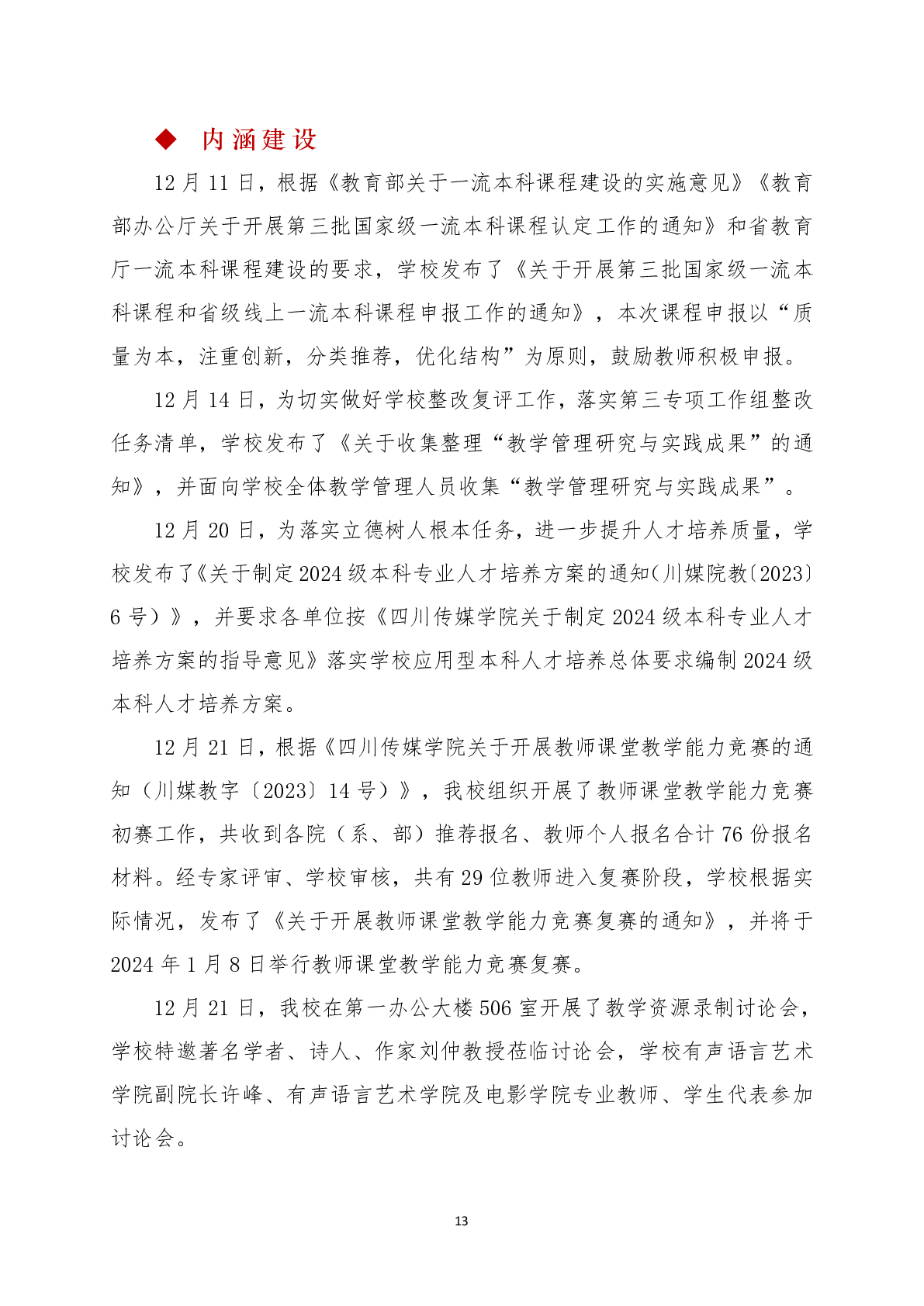 四川传媒学院教学工作简报 第十四期