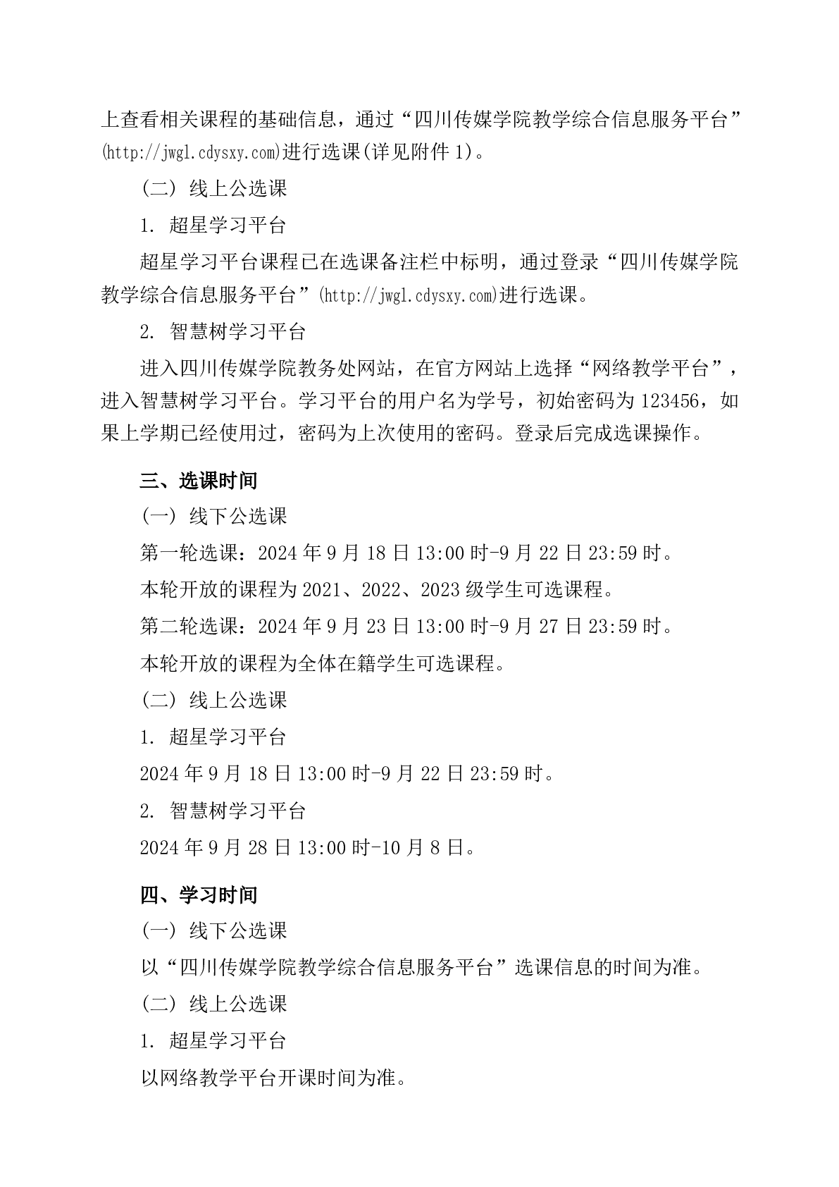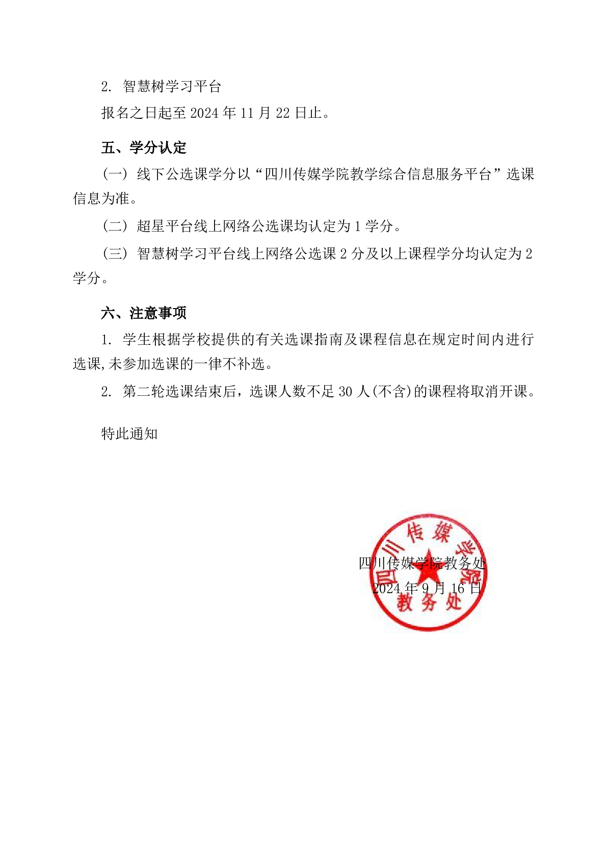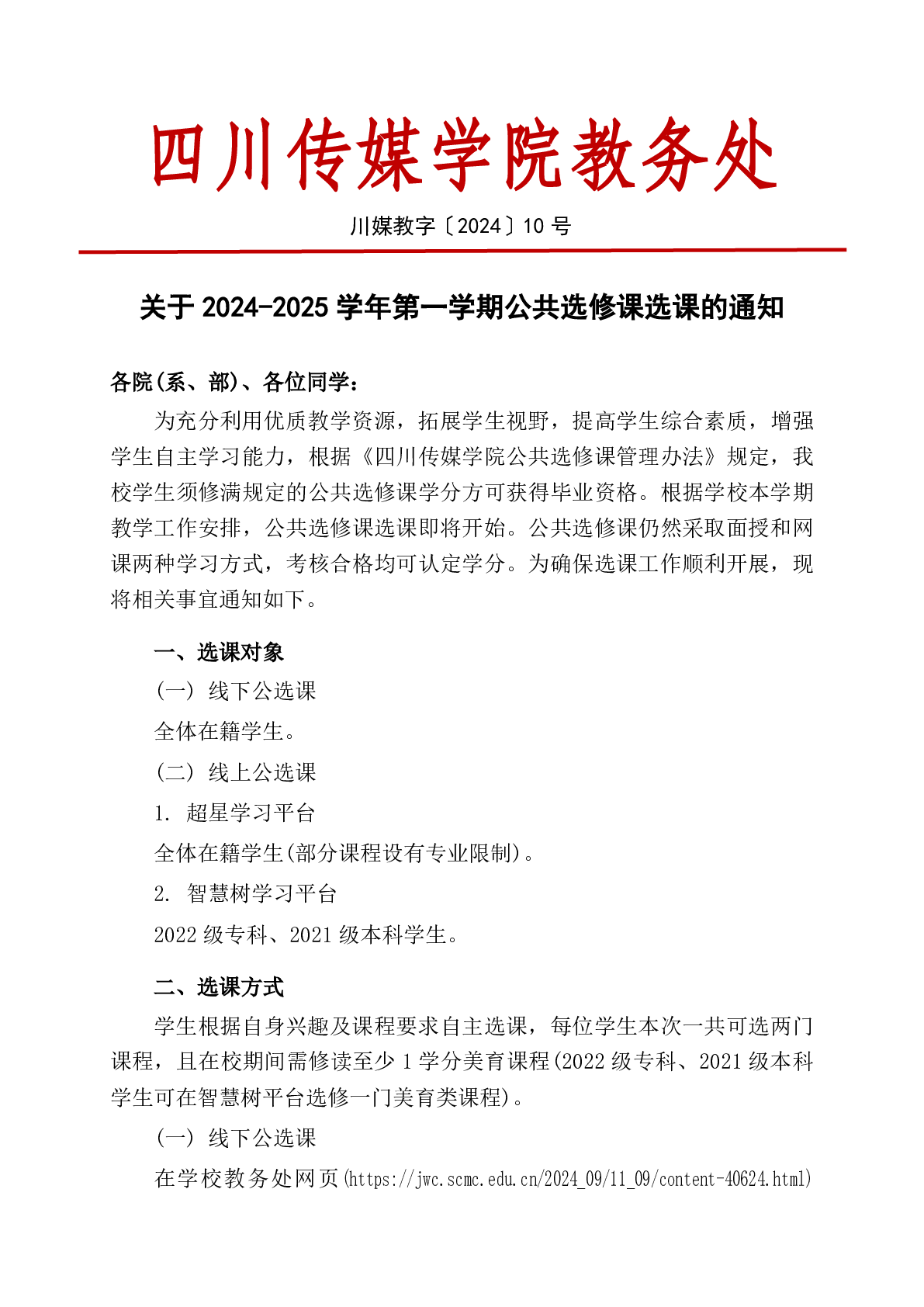 四川传媒学院教务处关于2024-2025学年第一学期公共选修课选课的通知
