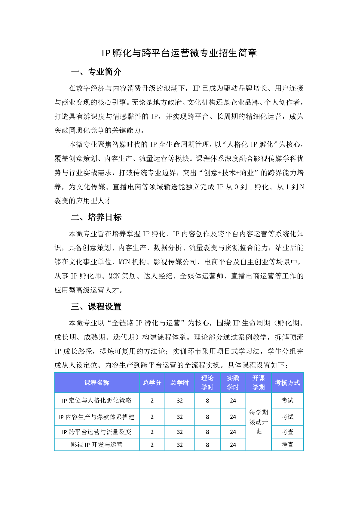 IP孵化与跨平台运营微专业招生简章